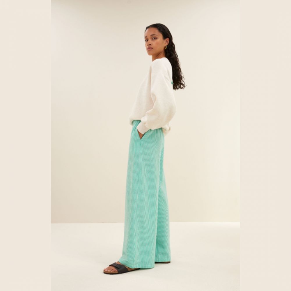 Ajoutez du style à votre garde-robe avec ce pantalon rayé sophistiqué! Le pantalon à rayures vertes Randy a une taille haute et une coupe classique. Grâce à la taille élastique, le pantalon s’ajuste confortablement, tandis que la longueur longue et les poches latérales ajoutent une touche élégante.
