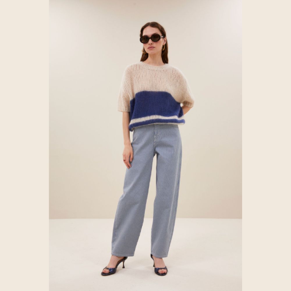 Le nino vintage stripe pullover est un pull décontracté avec une coupe relaxante et confortable. Son col rond et ses manches courtes lui confèrent un style élégant sans effort. Le motif rayé tricoté apporte un look intemporel, ce qui vous permet de l’associer facilement à toutes vos tenues préférées. Parfait pour un usage quotidien.