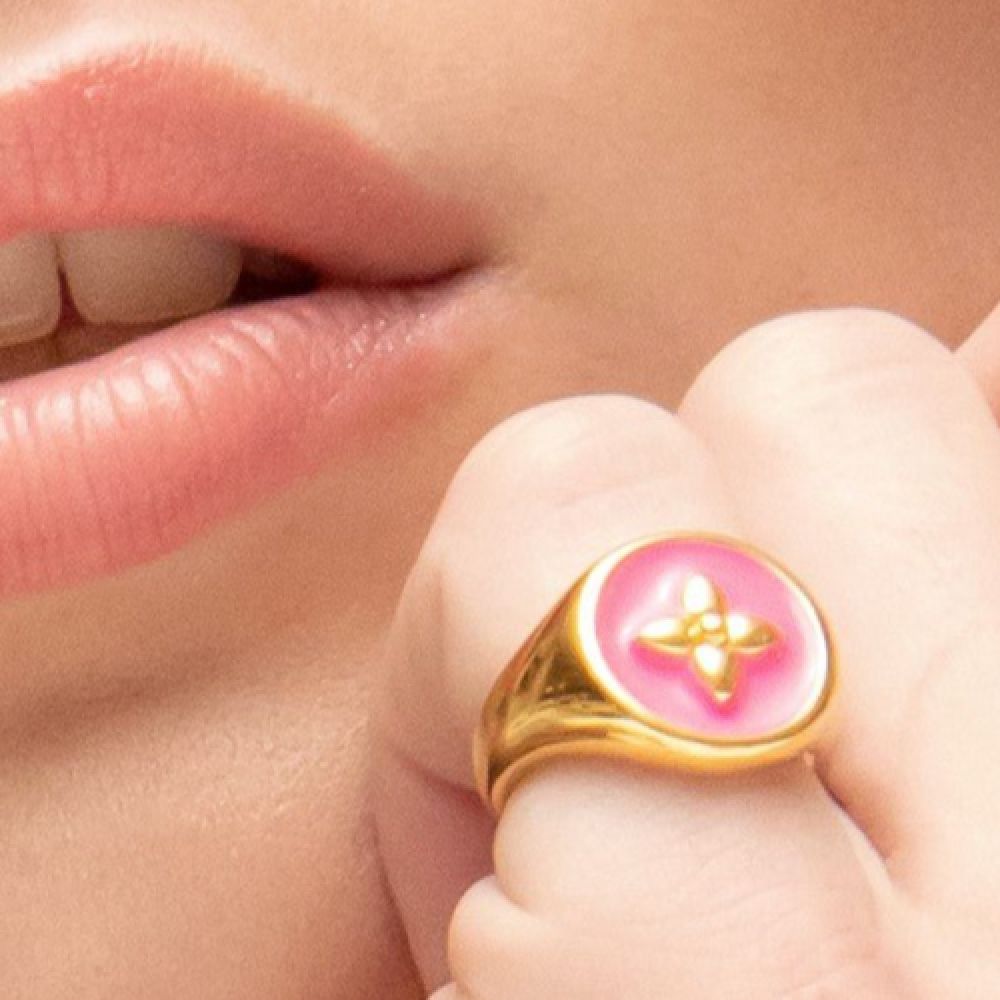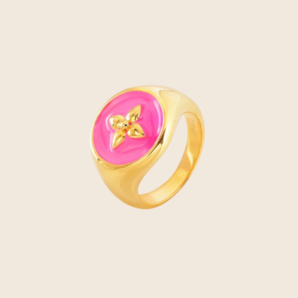 Chevalière en vermeil, or 18K sur argent 925, laqué fuchsia.
