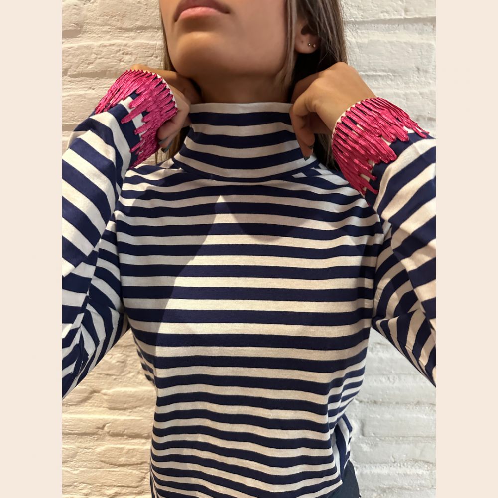 DEDIKATE Top Marinière Col Roulé Fuchsia