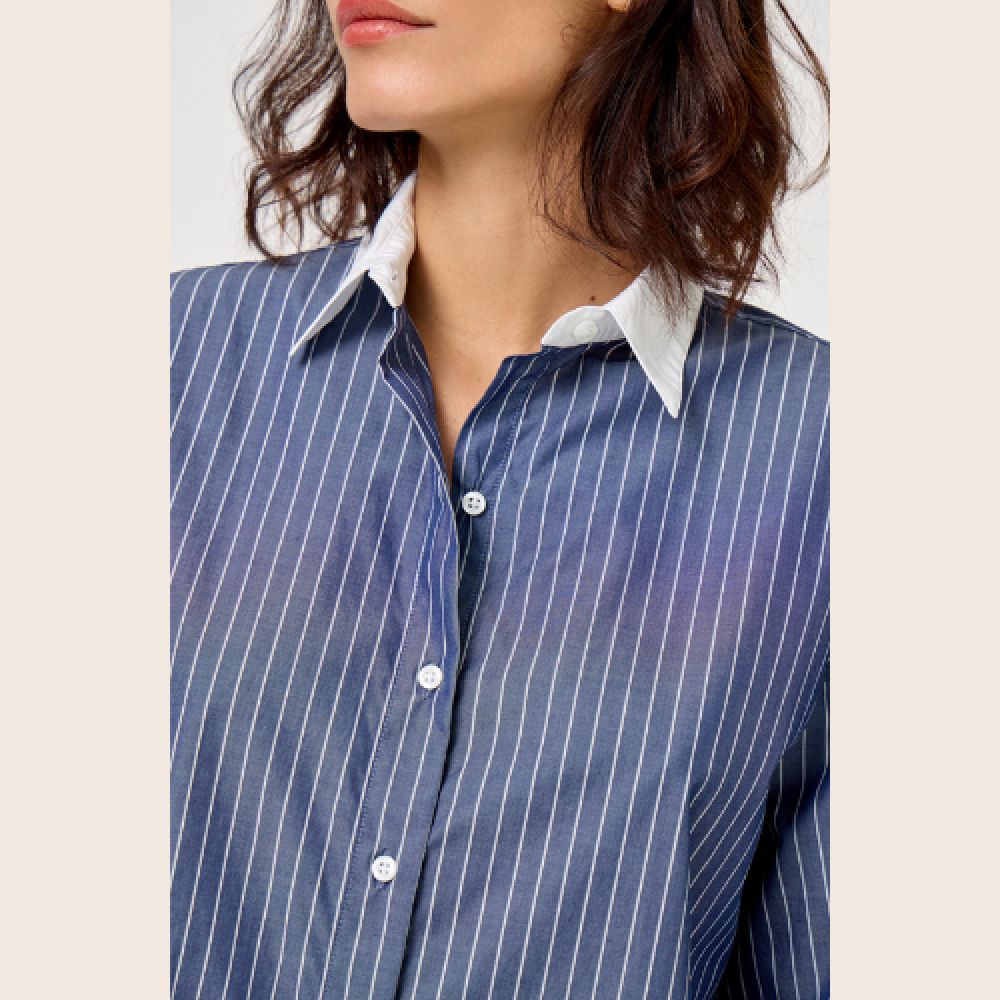 Cette chemise à la coupe oversize incarne une élégance décontractée et un style contemporain.