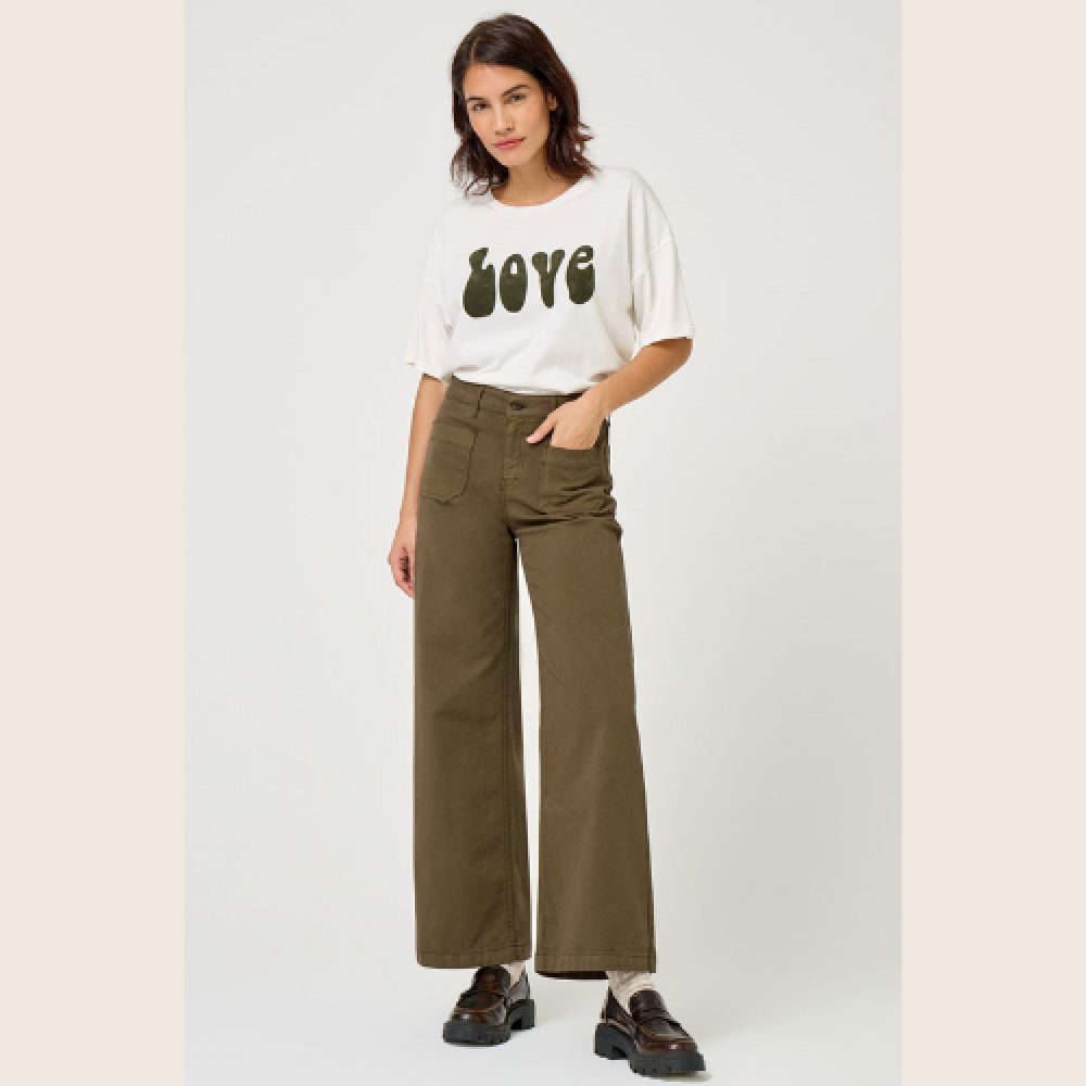 Ce pantalon pour femme, confectionné en coton doux, allie confort et élégance naturelle. Sa taille standard dessine une silhouette équilibrée, tandis que la fermeture se distingue par un bouton siglé FIVE et un zip dissimulé sous patte. La ceinture à passants souligne la ligne avec justesse, et les deux poches plaquées ajoutent une note de praticité chic.