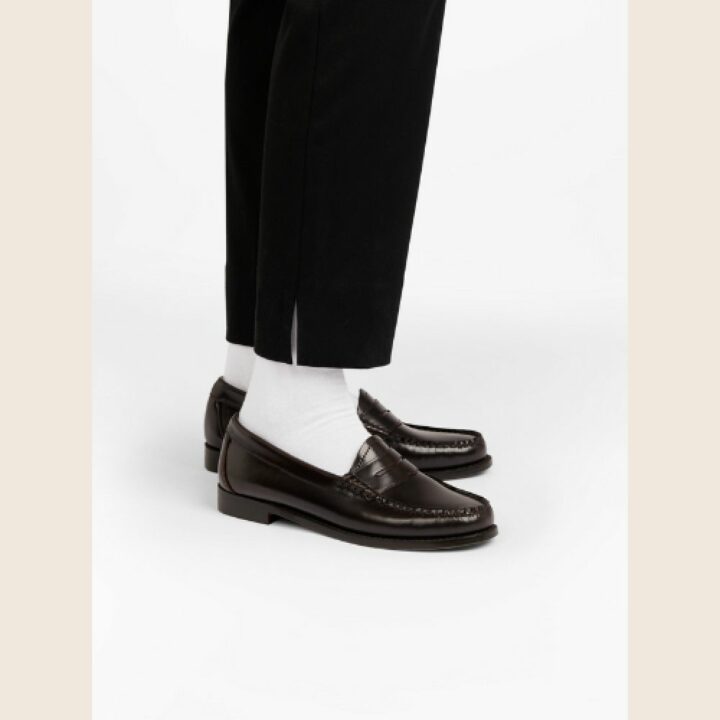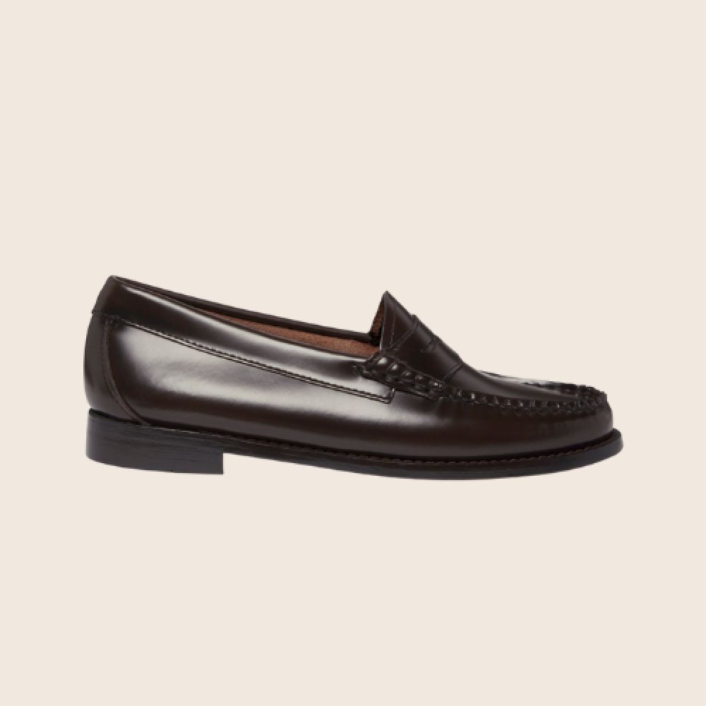 Mocassin féminin au design classique, fabriqué à la main dans un cuir poli brun chocolat d’exception.