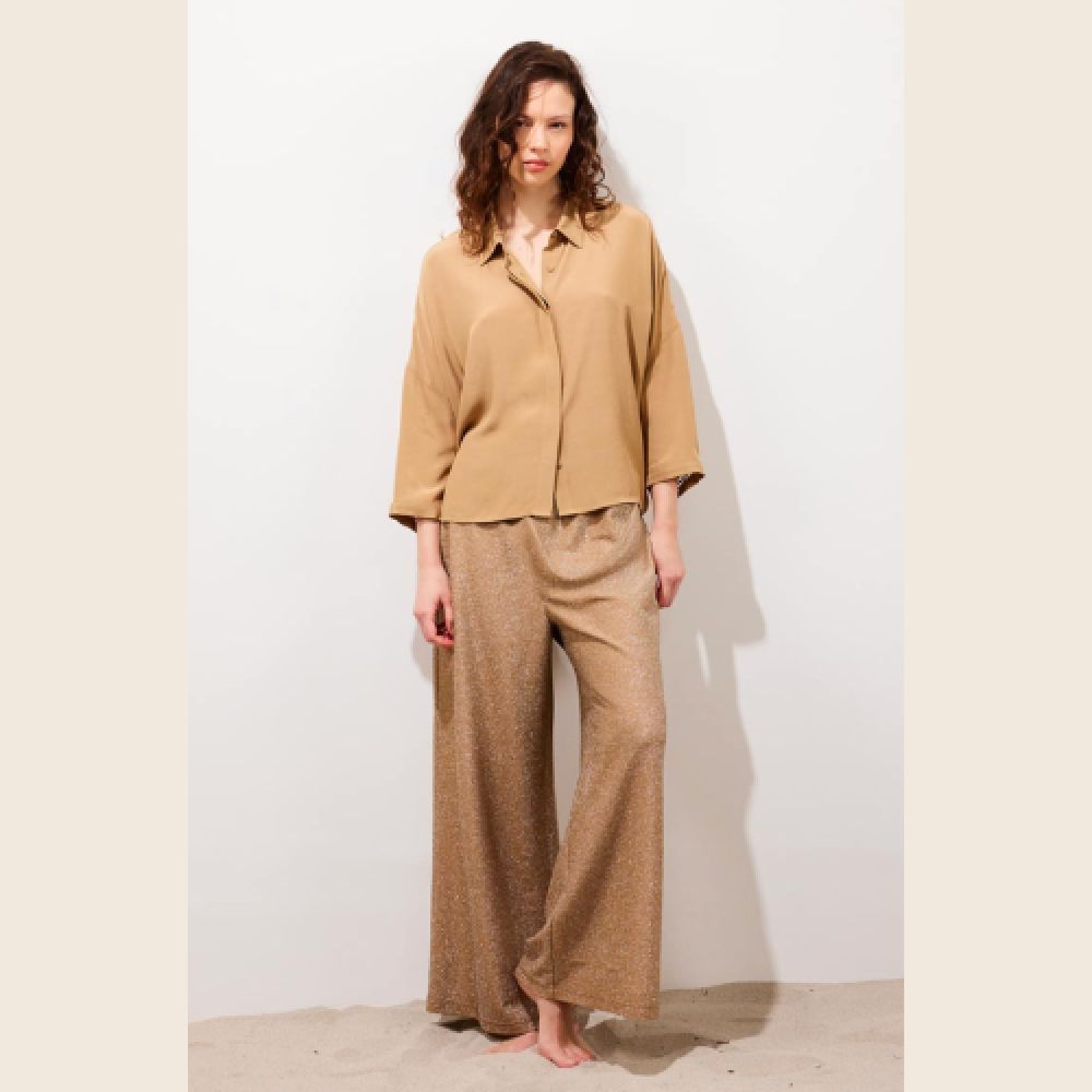 La chemise CLARA est l’une de ces pièces essentielles que l’on retrouve, que l’on garde, et que l’on porte différemment selon l’instant. Sa coupe loose, aux épaules tombantes, crée une silhouette fluide et naturelle, idéale quand la chaleur s’installe. Confectionnée dans une matière douce et souple, elle accompagne le mouvement du corps avec légèreté. Les manches 3/4 dégagent le poignet, tandis que la patte de boutonnage dissimulée épure la ligne. Le détail ajouré dans le dos et sur les manches insuffle une sensualité discrète, signature de Karma Koma. Une chemise que l’on porte rentrée ou flottante, en journée comme en fin d’après-midi, toujours avec cette élégance nonchalante propre à l’été.