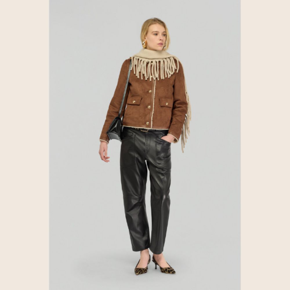 La coupe regular et la longueur à la taille assurent un porté équilibré, tandis que la texture du faux shearling confère confort et sophistication. Une pièce essentielle pour un look hivernal affirmé et raffiné.