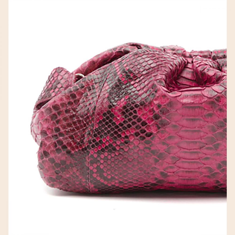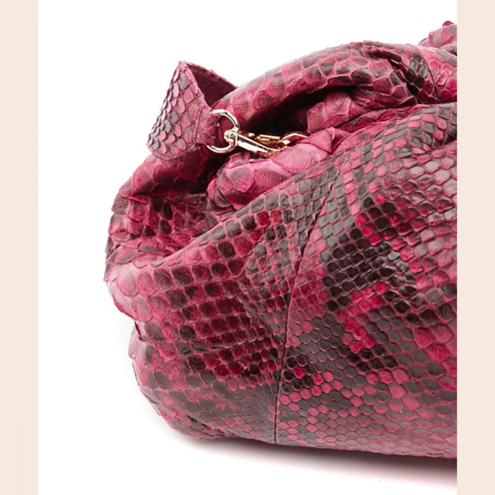 DESCRIPTION : Pochette souple en python Granade de taille 31 x 21 cm. Il contient une fermeture magnétique et une bandoulière à part. La doublure du sac est en coton.