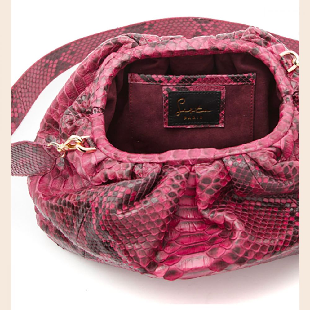 Le sac Uniq Big Grenade de chez SISTA PARIS est réalisé à la main en utilisant des techniques artisanales indonésiennes. Il est fabriqué en python véritable à la main . Il dispose d’une large bandoulière en python pour le porter à la fois à la main et sur l’épaule.