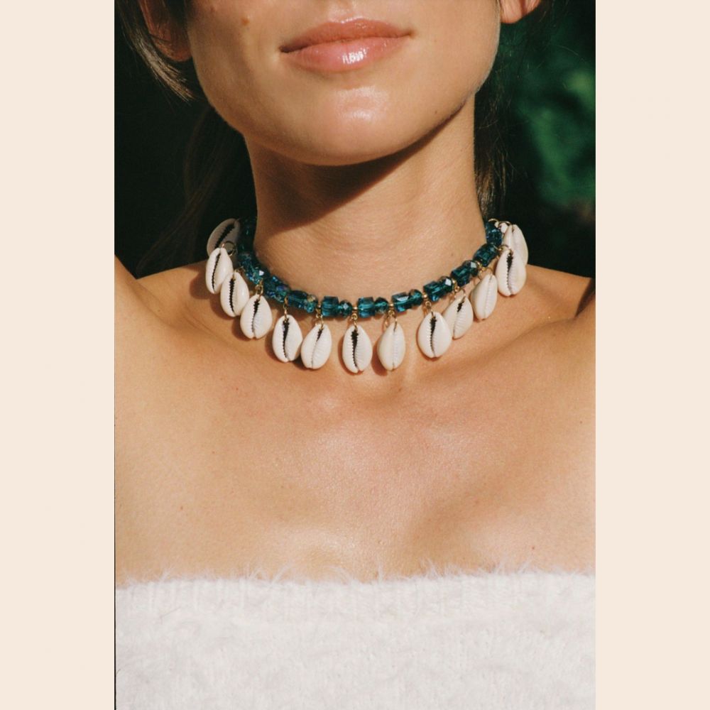 THE SHELL DEALER Collier Narcoshell Blue and Grey