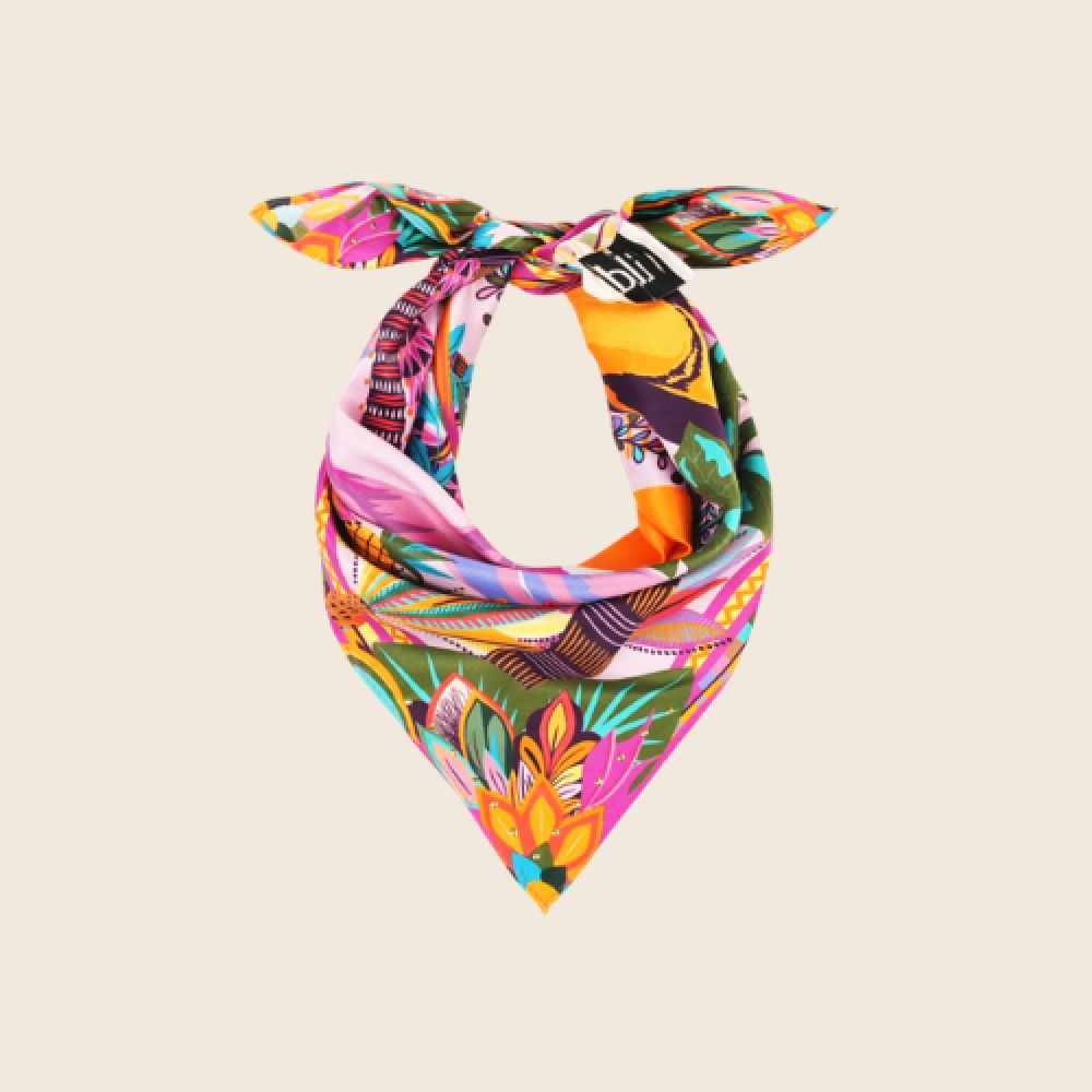 Chez Wild, chaque création devient l’occasion de dessiner des palmiers et de magnifier la luxuriance d’une nature tropicale. Oiseaux de paradis, perroquets flamboyants, dattiers et végétation XXL s’épanouissent sur un décor vibrant, illuminé par un soleil généreux et ponctué d’une vague, clin d’œil à l’océan, fidèle compagnon de nos collections d’été. HAWAÏ se décline en trois couleurs. Il est ici dans sa déclinaison rose, sublimée par des nuances lilas, roses, vert bouteille, turquoise, fuchsia, jaunes, rouges et corail ponctuées de noir.
